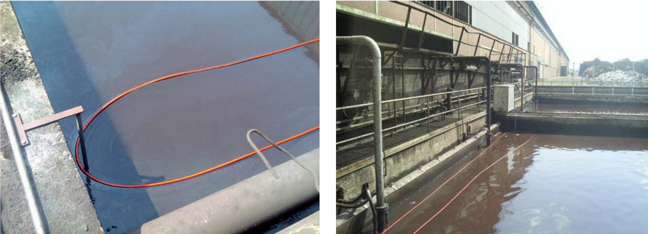 Der Ölskimmer wird am Ende des Längsklärbeckens in der Nähe der Pumpenkammer montiert. Der Ölaufnahmeschlauch des Schlauchkimmers wird mithilfe einer zusätzlichen Führung so geführt, dass der Ölaufnahmeschlauch über die gesamte Beckenbreite arbeitet. Der Ölaufnahmeschlauch liegt parallel zu der Tauchwand, die das Öl auf der Wasseroberfläche zurückhält, auf. Das von dem Ölskimmer geförderte Öl fließt von den Abstreifern zunächst in einen Schlammfang, der unterhalb des Ölskimmers angeordnet ist.